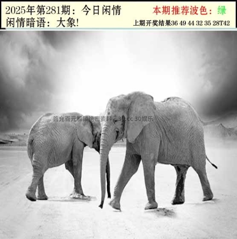 281期另版闲情:大象 解释:大象,图解龙狗牛羊兔猴蛇 综合特肖:龙狗牛羊兔猴蛇 综合四肖:龙狗牛羊 |